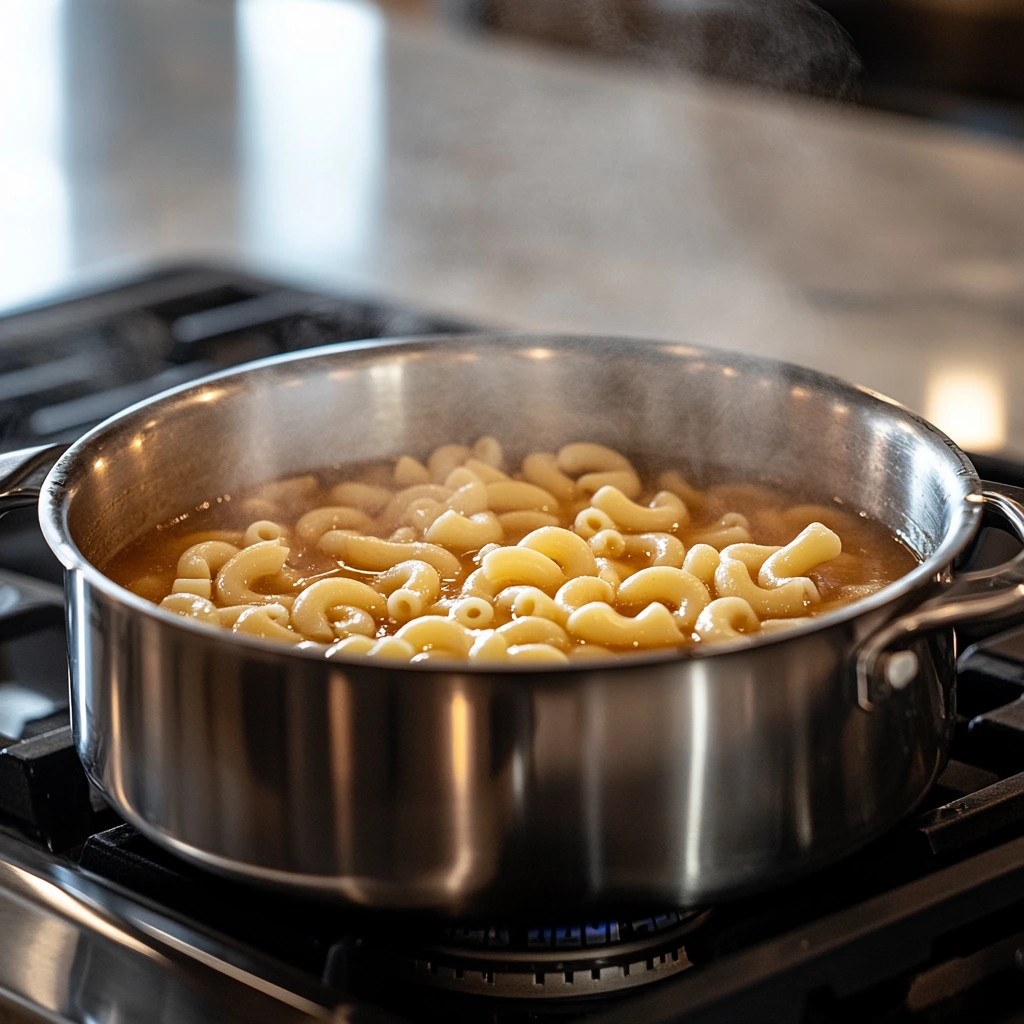 Once the soup is boiling, reduce the heat to low and stir in the elbow macaroni. Let it simmer for 10–12 minutes, or until the pasta is tender. Stir occasionally to prevent the pasta from sticking.