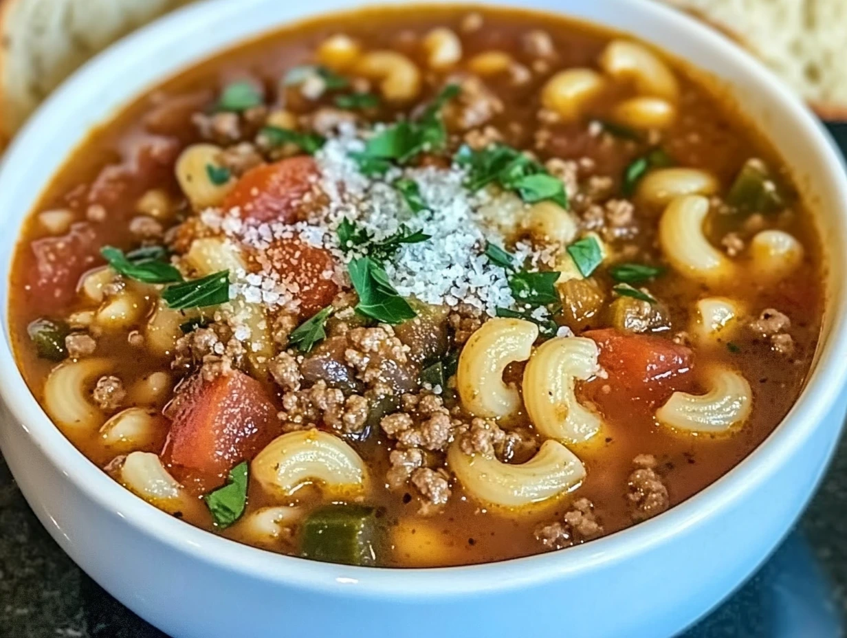This soup has all the familiar flavors of a classic beef and tomato combination, but with the added twist of pasta for that extra heartiness. The ground beef, tender macaroni, and savory tomato base make it a meal that will have everyone at the table asking for seconds. Plus, it’s totally customizable—you can make it as smoky, tangy, or spicy as you want by adjusting a few simple ingredients.