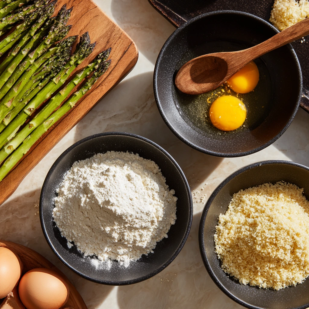 Dry Asparagus Is Key: Pat your trimmed spears dry before dredging. Any lingering moisture can make the crumbs slip off or steam instead of crisping.