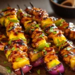 These vibrant kebabs bring together tender, marinated chicken, juicy pineapple, and crisp vegetables for a sweet-and-savory bite straight from the islands. Perfect for summer cookouts or a fun weeknight dinner, they grill up quickly and pair wonderfully with coconut rice or a fresh green salad.