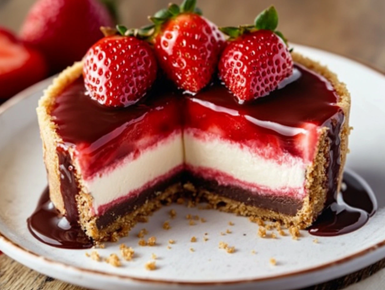 This strawberry sauce is pure magic. It’s fresh, slightly sweet, and adds a beautiful fruity contrast to the rich chocolate and cheesecake.