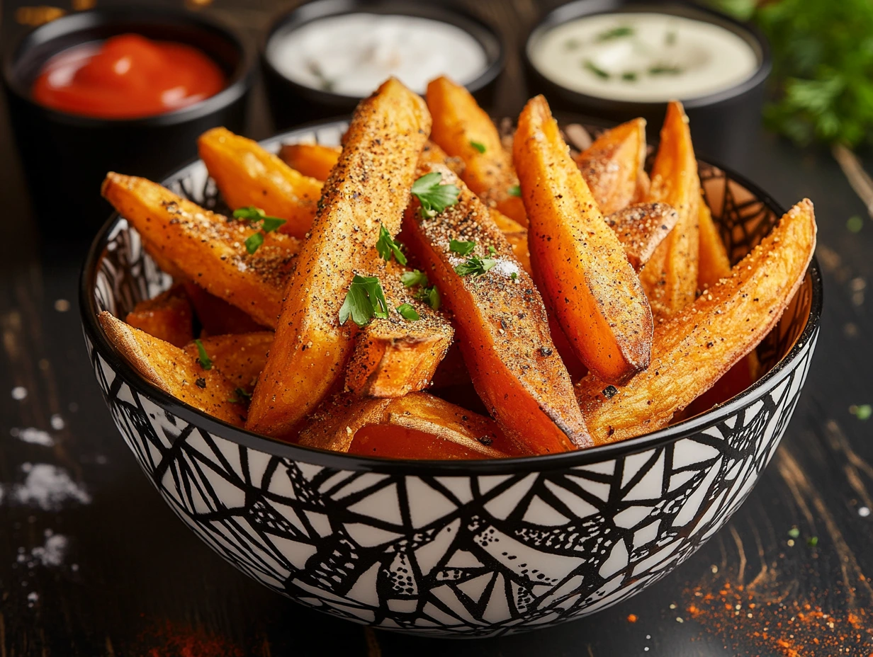 These homemade sweet potato fries are crispy on the outside, soft on the inside, and packed with flavor! Perfect as a snack, side dish, or appetizer, they pair wonderfully with a variety of dipping sauces.